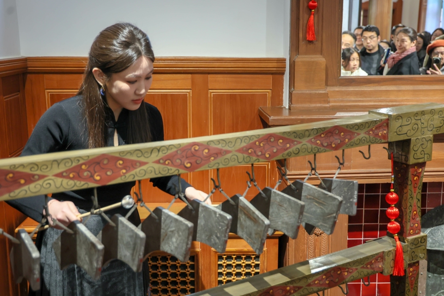 据先容,这次是全球首套陨石编磬“万籁寂”的全套首演。“万籁寂”由20件陨石编磬构成,是新式乐器组合。当陨石编磬的声息响起,东说念主们听到的不仅是音乐,更是突出46亿年的全国回响与中中语明礼乐传统的对话。在互动体验区,市民不仅不错亲手敲击陨石磬片,感受“天际来音”的轰动,还能戴上VR星空眼镜,遽然踏进于普遍银河。